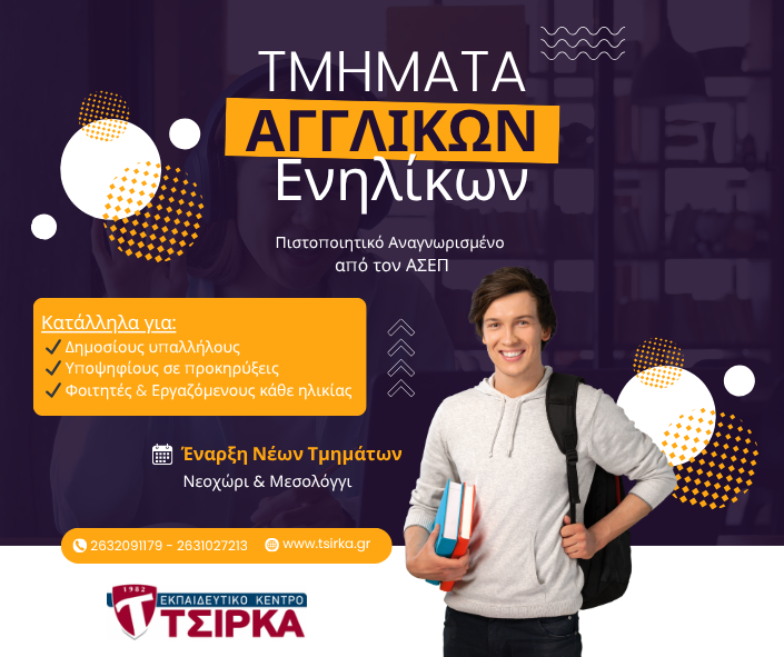 Το Εκπαιδευτικό Κέντρο ΤΣΙΡΚΑ προσφέρει ένα ειδικά σχεδιασμένο πρόγραμμα Αγγλικών για ενήλικες, διάρκειας 50 ωρών, με στόχο την ουσιαστική ενίσχυση των γλωσσικών δεξιοτήτων και την ολοκληρωμένη προετοιμασία για την απόκτηση του πτυχίου TIE του Πανεπιστημίου Lancashire.