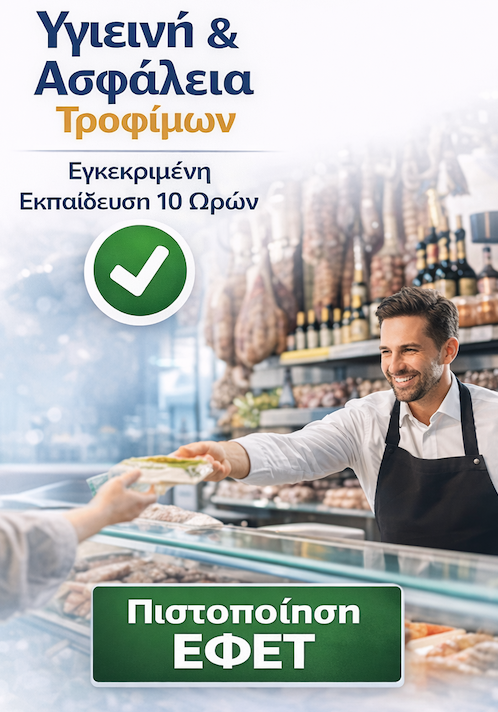 Η υγιεινή και η ασφάλεια των τροφίμων αποτελούν βασική υποχρέωση κάθε επιχείρησης που δραστηριοποιείται στην παραγωγή, επεξεργασία, αποθήκευση, μεταφορά, διακίνηση ή διάθεση τροφίμων. Σύμφωνα με την Υπουργική Απόφαση 110581/2025 και τον Κανονισμό (ΕΚ) 852/2004, το προσωπικό που χειρίζεται τρόφιμα οφείλει να καταρτίζεται σε θέματα υγιεινής και ασφάλειας τροφίμων, στο πλαίσιο της προστασίας της δημόσιας υγείας και του καταναλωτή.